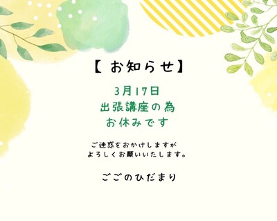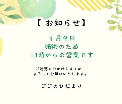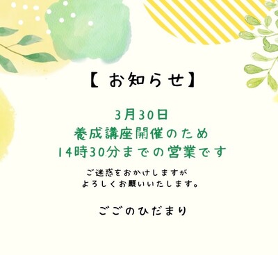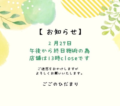 | 連絡先 | gogono-hidamari@kej.biglobe.ne.jp |
