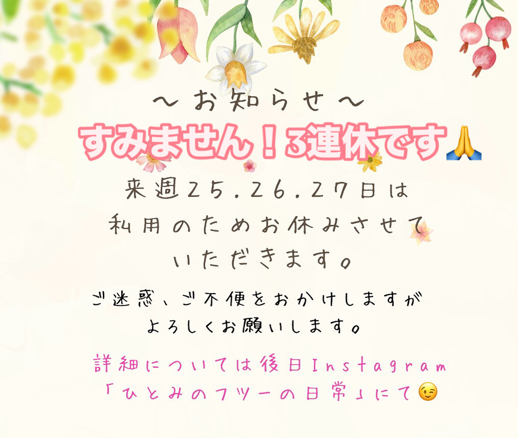 詳しくは後日、個人のInstagram(復活しました笑)にて